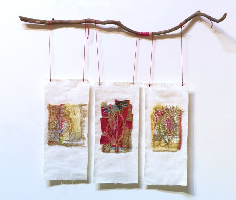Linda McNutt is an artist and designer who works and lives in a converted dairy barn in Claverack, NY. A longtime meditation practitioner, she explores the idea of integrating the artistry of textile work and the spiritual. “I [am] passionate about hand stitching, drawn to the tactile beauty of the assemblage of textiles and the use of ‘stitch’ as a drawing medium and art form and also as a means of personal expression and transformation,” she says. “I believe stitching and sewing is a healing act…It is a tactile form of poetry that becomes a way to make spirit visible.”